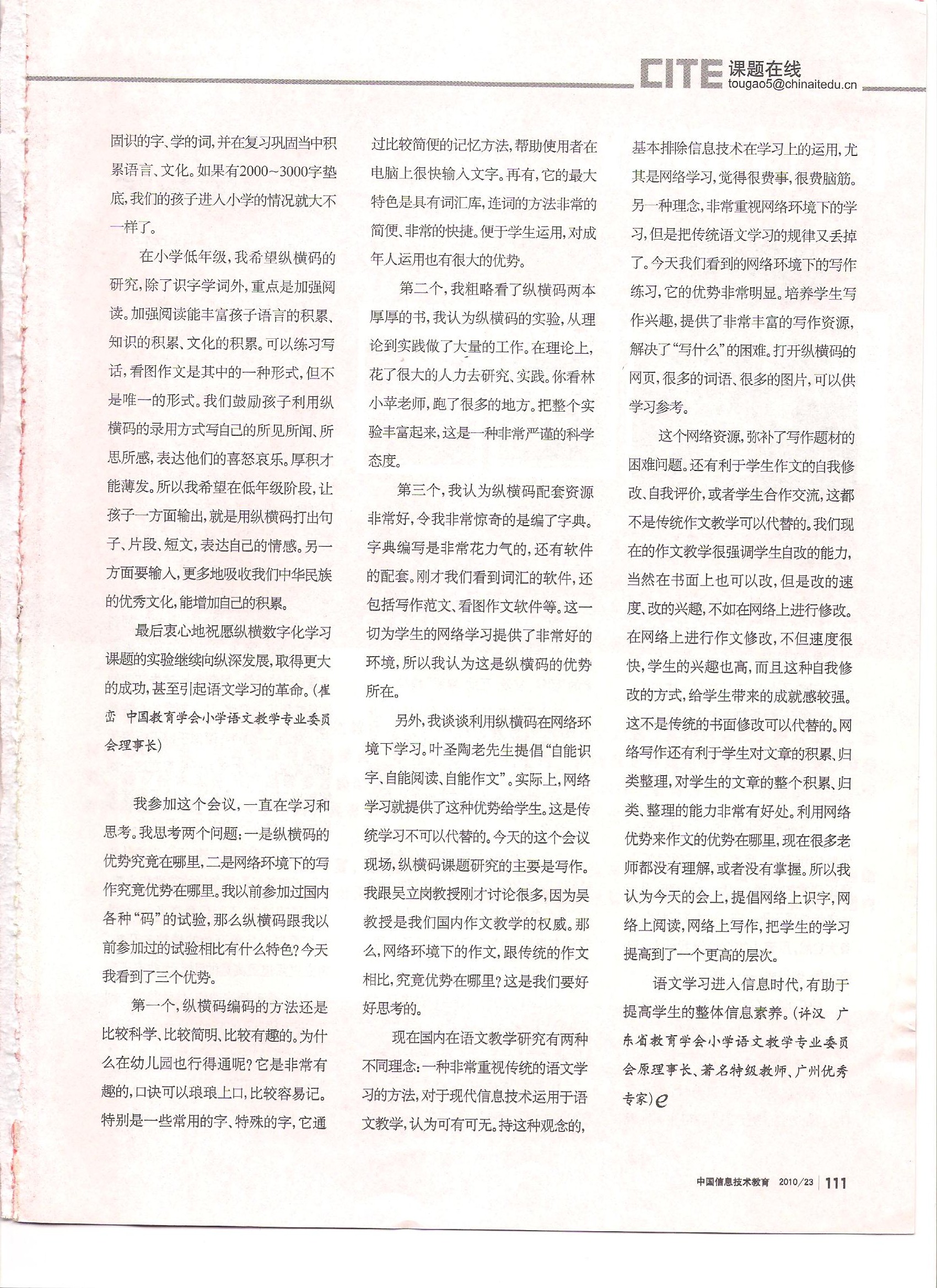 获邀在《中国信息技术教育》上刊登的文章